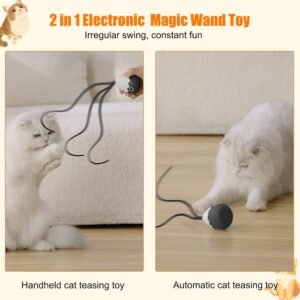 Cat Wand Toy, Automatic Silicone Tail Teaser Toy 2 in 1, Electronic Interactive Cat Toy for Indoor Cats, Rechargeable Exercise Toy for Kitten-Black