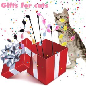 11PCS Cat Wand Toy, Cat Toys Interactive for Indoor Cats, 2 Retractable Cat Wand, 7 Worm Cat Teaser Toys and 1 Plush Fish Cat Toy, Cat Feather Toys for Play Chase Exercise with Kitten, Extra 1 Line