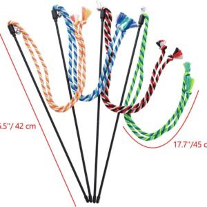 Cat Wands, 4 PCS Colorful Rope Cat Toys Interactive Cat Teaser Wands with Bell for All Breed Sizes