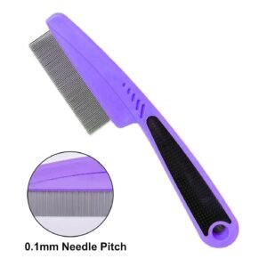 Flea Comb with Rubber Handle, Flea and Tick Comb for Dogs & Cats, Fine Tooth Dog Comb for Grooming (Purple)