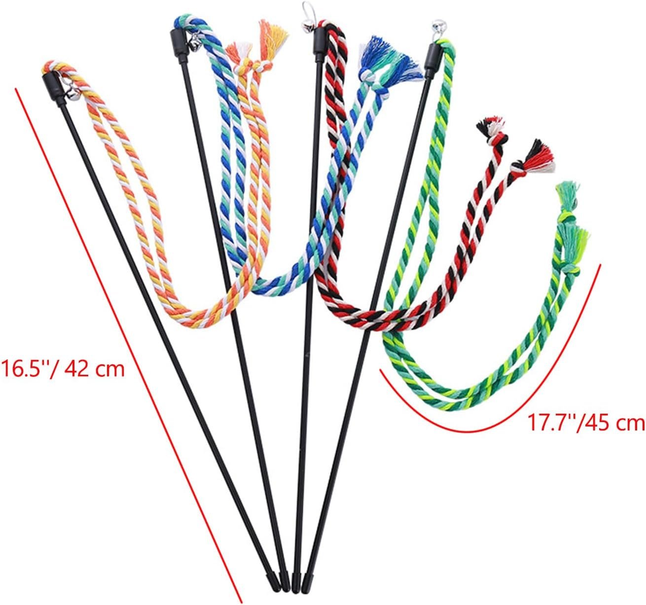 - You will receive 4 pcs cat wand toys. Pole measures 16.5 inches in length, the colorful rope is 17.7 inches in length