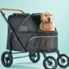 • 【Roomy and Robust for Your Furry Family! 】 dog stroller for large dogs boast an inner size of 33” x 20” x 12”, perfect for large pets under 30 inches, like Dobermans, Boxers, and Labradors. The extra-wide carriage provides a comfortable ride for multiple pets, fitting 3-4 medium-sized companions such as Bulldogs and Corgis, or 4-7 small pets like Poodles and Chihuahuas.